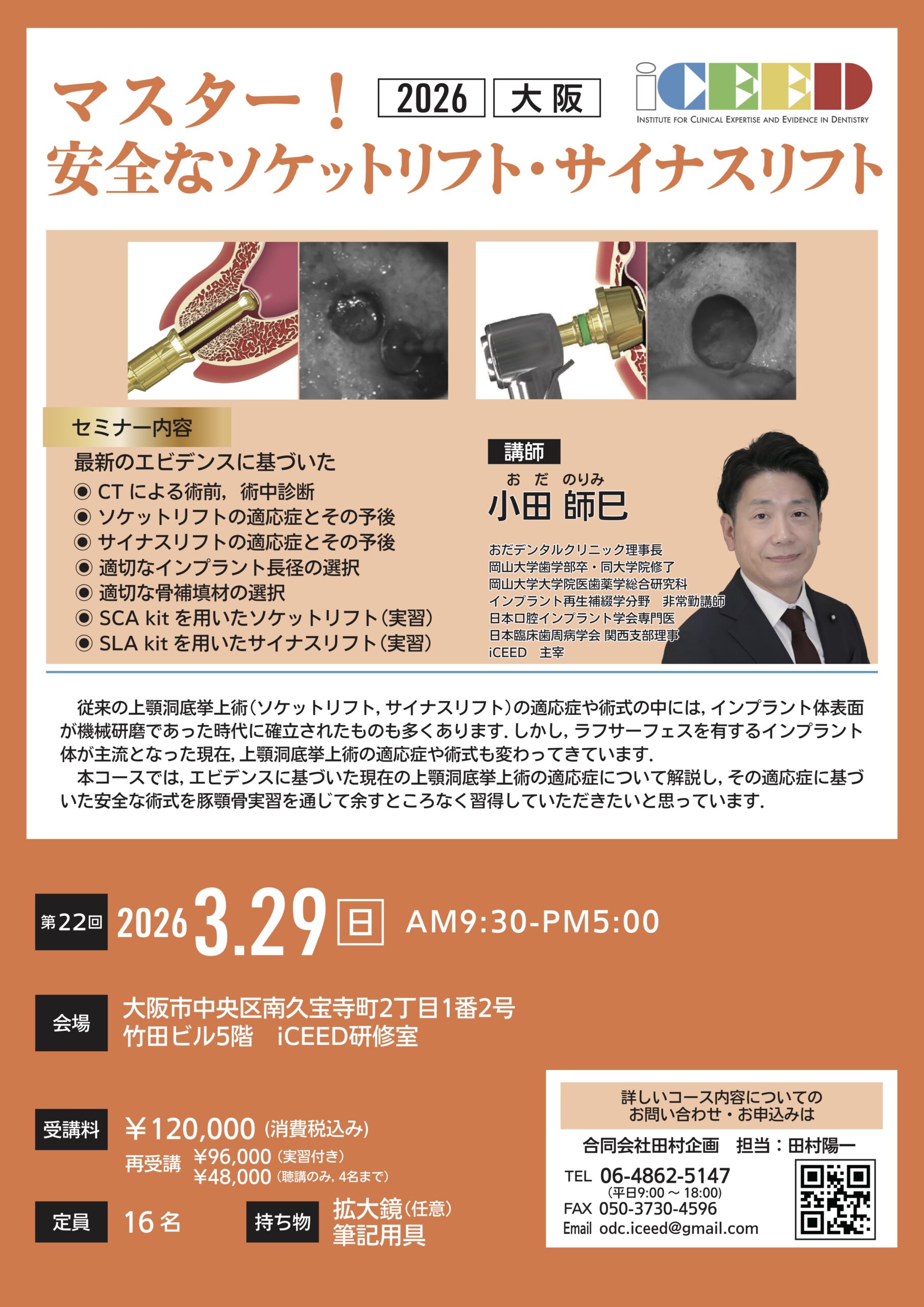 (大阪) マスター!安全なソケットリフト・サイナスリフト