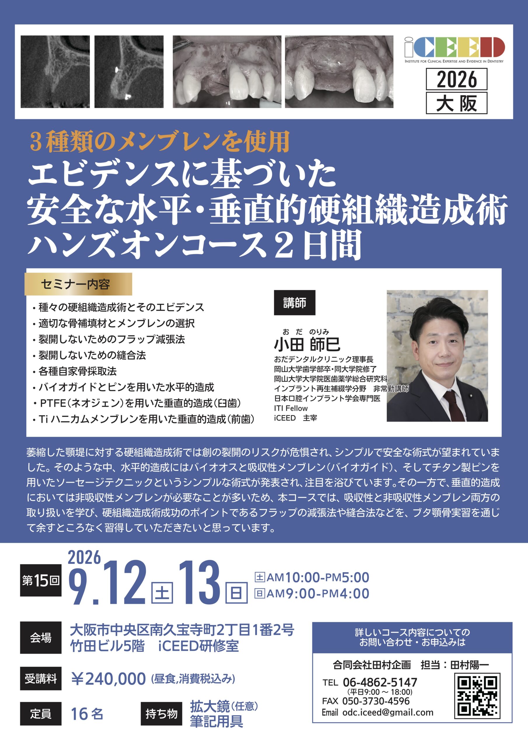 (大阪) エビデンスに基づいた安全な水平・垂直的硬組織造成術ハンズオンコース2日間