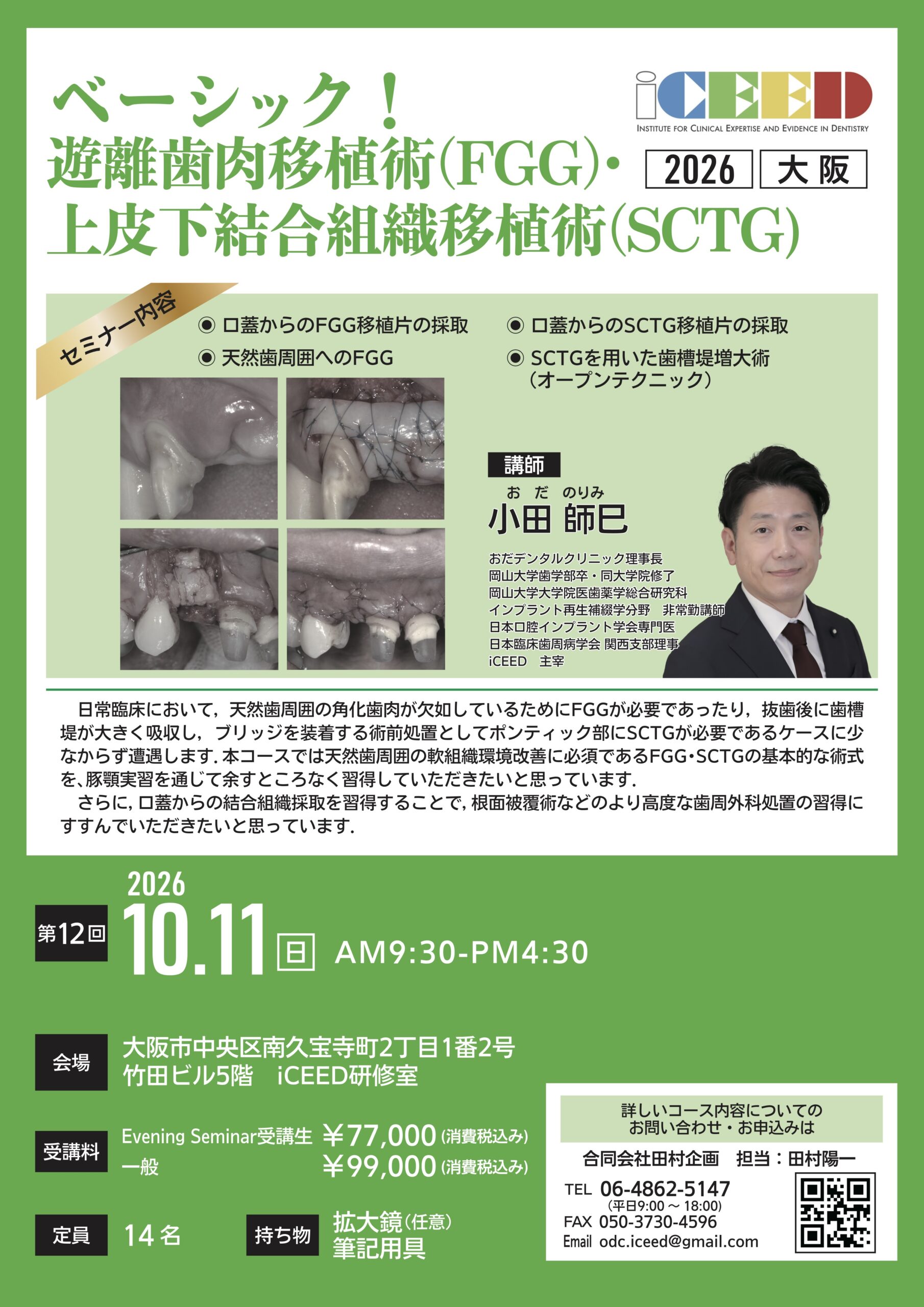 (大阪) ベーシック!遊離歯肉移植術(FGG)上皮下結合組織移植術(SCTG)