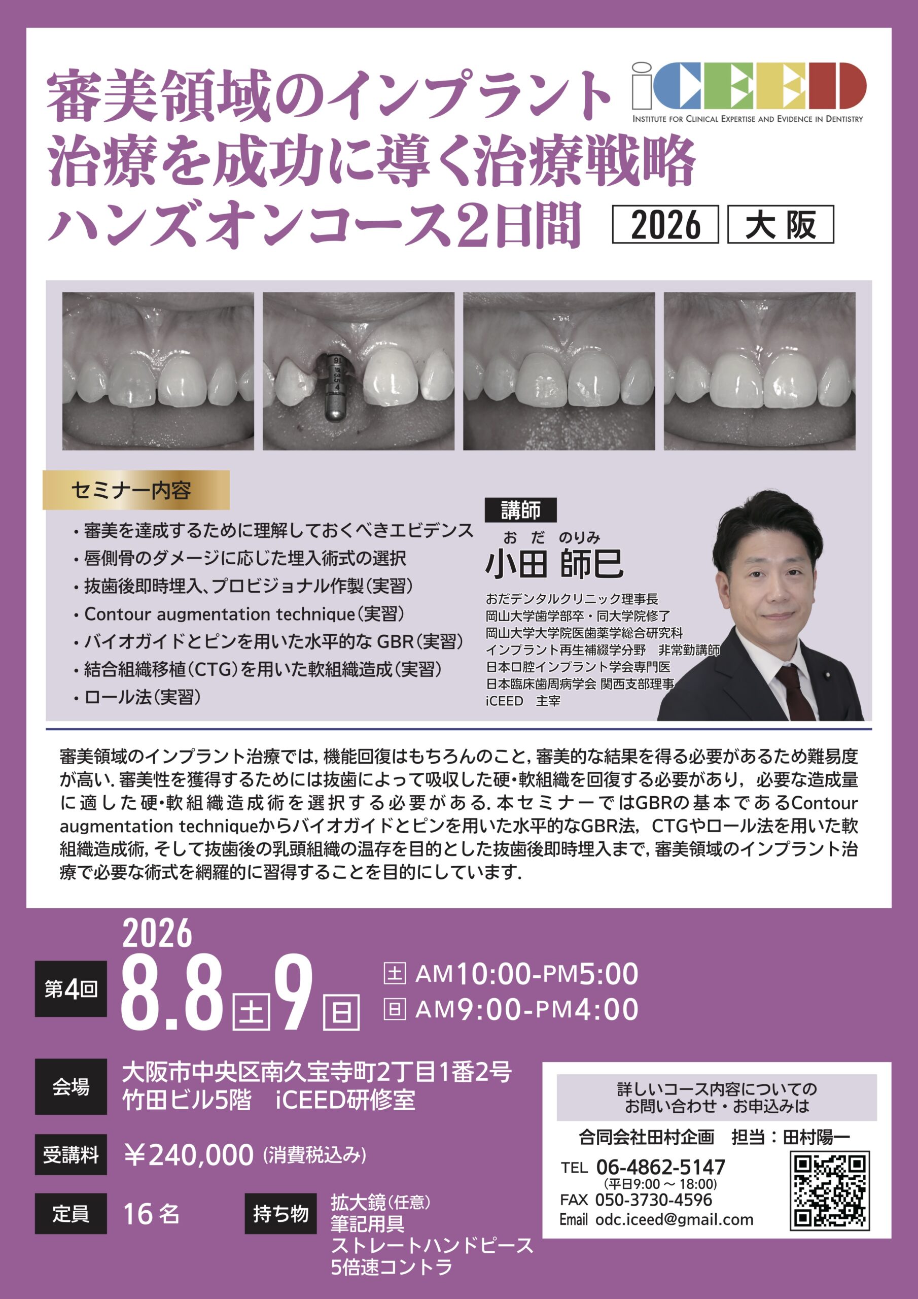 (大阪) 審美領域のインプラント治療を成功に導く治療戦略ハンズオンコース2日間